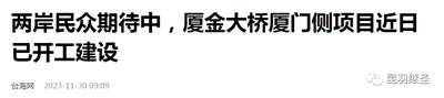 与此同时,在无数国人期待的眼神中,厦金大桥厦门一侧的项目,已于近日开工建设。