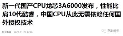 11月28日,中国自主研发的新一代通用CPU“龙芯3A6000”在北京正式发布。