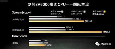 而龙芯上一代产品3A5000的整体性能,已经与英特尔2020年上市的第十代酷睿四核处理器,以及AMD Zen2处理器性能相当了。