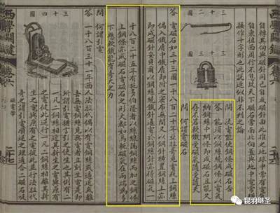 “嘉庆二十二年(1817年)间,西洋人深究其理,将五金电器上增减两铜线平接于指南针上。增线在南,减线在北,则针之北极必转而向西。接于针下,必转向东......盖针之南北极欲绕增减二线而旋却又左右不同之故。”