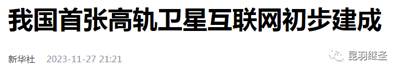 11月27日,我国首张完整覆盖国土全境的高轨卫星互联网初步建成。