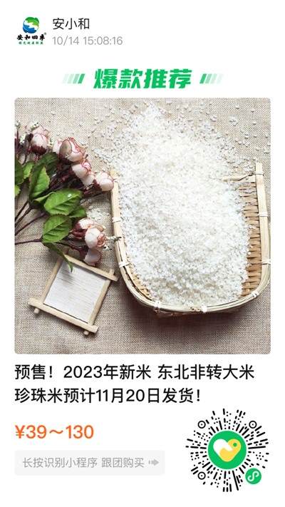 这次是2023年新米第一次团购(预售),即便有诸多如价格上涨的不利因素,我们与农户沟通,将继续提供绿色安全的安和贡米。