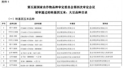 日前,农业农村部官网公示了第五届国家农作物品种审定委员会第四次品种审定会议初审通过的转基因玉米、大豆品种及相关信息,包括37个转基因玉米品种、14个转基因大豆品种。此次转基因玉米和大豆通过初审,标志着转基因主粮商业化种植成为可能。
