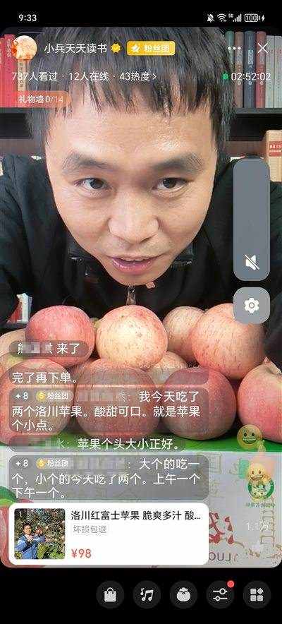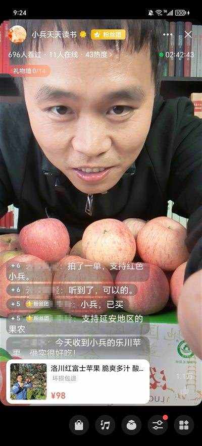 有老师在直播间里说:今天收到小兵推荐的洛川苹果,确实很好吃。