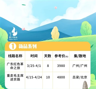 2024星火旅游重磅启动,新的一年我们将继续深耕重走长征路红色之旅线路,并不断推陈出新,提供更多选择,打造全新体验!