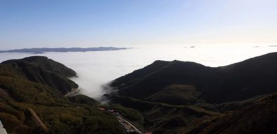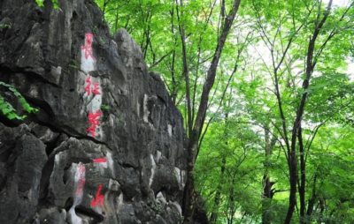 顺着小道上山,小道中途有石门屏障,具有“一夫当关,万夫莫开”气势。山上有座云山古寺,当年毛主席曾在此居住与办公。