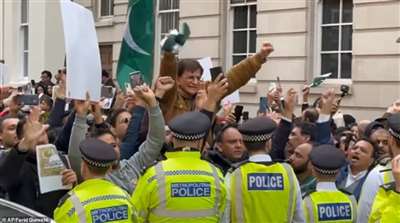 伊姆兰·汗的支持者在老谢位于伦敦的居所附近抗议