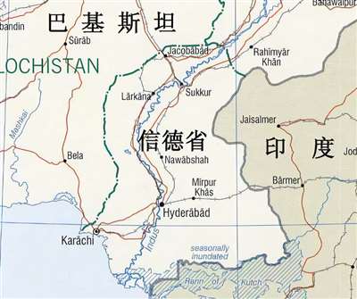 绿色为旁遮普省,紫色为信德省