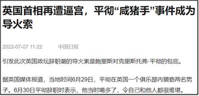 在此之前,约翰逊就因为“聚会门”丑闻,而遭到很大的辞职压力。