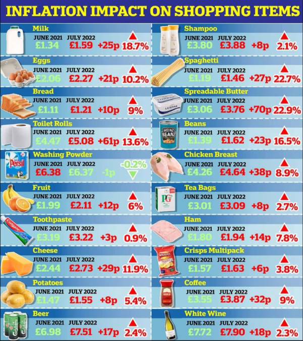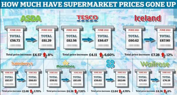 英国国家统计局表示,6月份柴油的平均价格已经达到每升192.4便士,再次创下历史新高,这导致家用汽车加满油箱的平均费用超过了100英镑。与此同时,各类生活消费品的价格都在悄悄地增长。牛奶、奶酪和鸡蛋在6月份价格涨幅最大,蔬菜、肉类和即食食品的价格也在上涨。食品价格正在以2009年3月以来的最快速度增长。据分析显示,英国家庭目前用于购买食品和杂货一年的费用可能比此前一年增加近400英镑。
