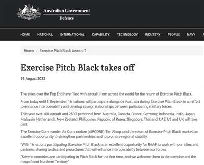 虽然澳皇家空军以及包括澳媒在内的一些媒体事先宣扬已久,澳国防部通稿还是相当详细地复述了一遍军演相关信息: