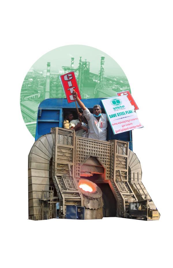 工人在示威游行中唱诵诗歌,激励自己为了“不失去脚下的土地、不丢掉手中的钢铁”而战斗。他们唱道,你要是敢把工厂卖给私人,“维沙卡城将变成钢铁熔炉,安得拉邦北部将变成战场……我们誓死保卫自己的钢铁。”