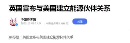 为维护本国能源安全,降低当前能源价格,英国已和美国达成协议,建立能源伙伴关系。