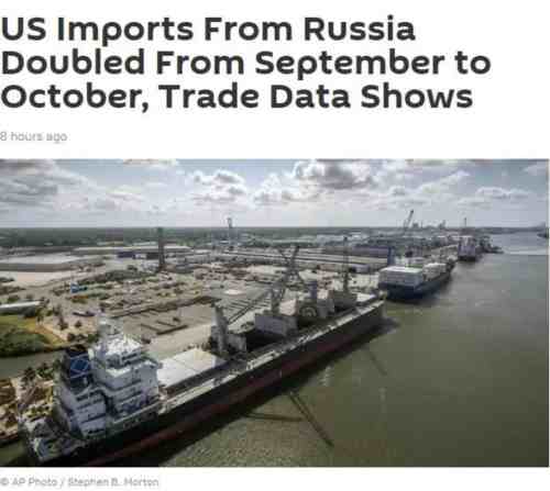 可到了10月份,美国自俄罗斯的进口额却涨到了7.324亿美元,与9月相比增加了4亿美元。