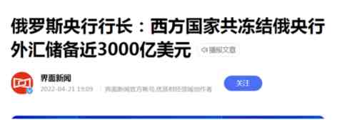 首先,是俄罗斯央行的3000亿美元外汇储备被冻结。