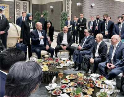 去年国际会议期间,有一张照片,可以说,是埃尔多安最得意的一张图片,他端坐在C位,给普京和众多中亚领导人讲故事。