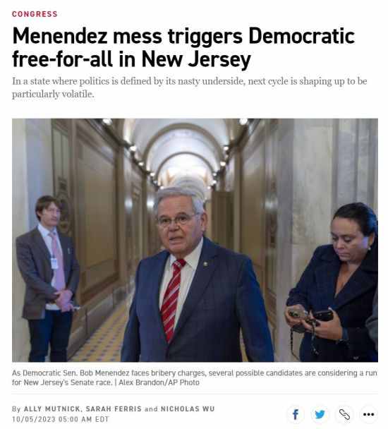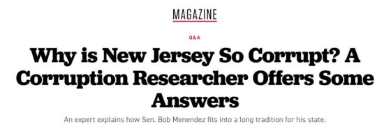 首先是把过去几十年梅南德兹只手遮天的新泽西州说成是“长期以来的腐败温床”,属于为了搞垮梅南德兹,不惜掀美国民主神话的桌子,让围观群众看得目瞪口呆,惊叹之余也不禁好奇,怎么今天才发现新泽西是腐败温床,敢情过去三十多年都睁一只眼闭一只眼呗?