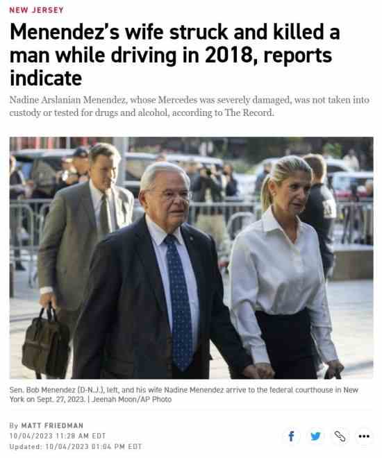 到这个地步,梅南德兹仍然不降。于是紧接着《纽时》和POLITICO等曝出了梅南德兹夫人的交通肇事杀人案。