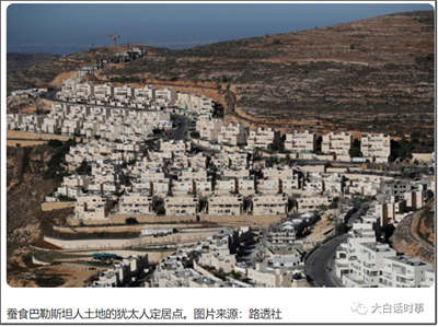 以色列就是采取这种,不断持续新建立定居点的蚕食方式,把巴勒斯坦人的家园,不断分割,包围。