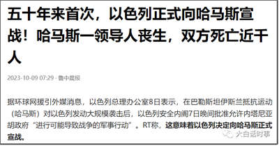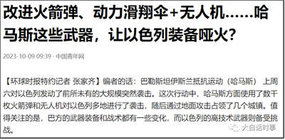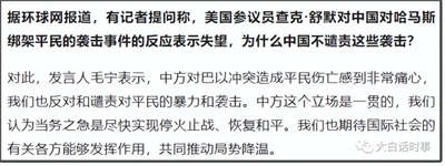 我们网络上,也有很多亲美人士,自然是跟美国的宣传口径完全一致,把哈马斯的袭击行为视为恐怖袭击,然后重点放在哈马斯的袭击,造成以色列平民的伤亡。