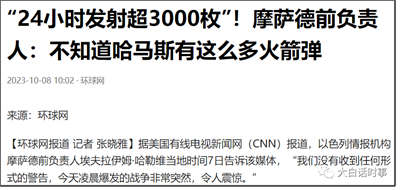 相比之下,2021年的巴以冲突,10天时间里,哈马斯才发射4600多枚火箭弹,还没有这次首轮集中发射的火箭弹多。