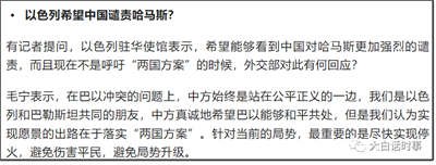 但以色列刻意说希望看到我们对哈马斯更加强烈谴责,无非就是配合美国在对我们搞一些舆论压力,用心不良。