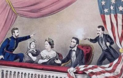 1865年4月14日晚,林肯在华盛顿福特剧院总统包厢观看《我们的美国兄弟》一剧,晚上10点15分的时候,同情南方袒护奴隶制,对南北战争结局极度不满的演员约翰·威尔克斯·布斯,趁着全场观众沉浸在剧情,然后对着林肯的后脑和左耳之间迅速地连开6枪,其中5次命中要害……林肯当场死亡。布斯逃跑的时候,还对着观众席大喊——“这就是暴君的下场”。