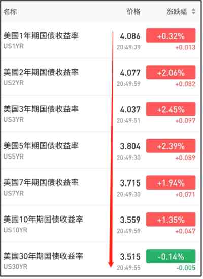 美债从1年期到30年期,是全线倒挂。