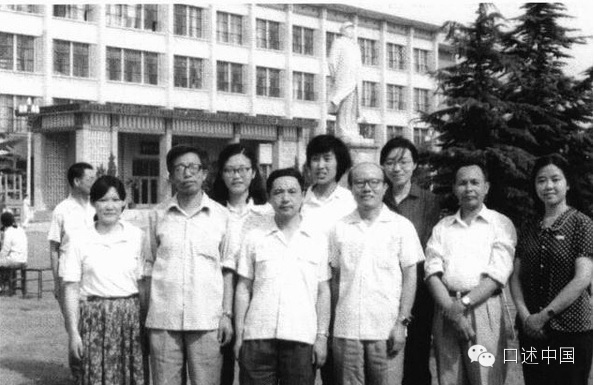 七十年代末,戴锦华(后排右一)与北大中文系师生在北大图书馆前合影