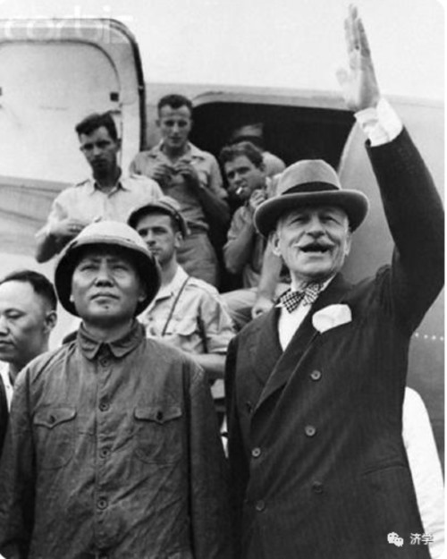 1945年8月赫尔利再次来到延安,接毛主席赴重庆,与国民党谈判。