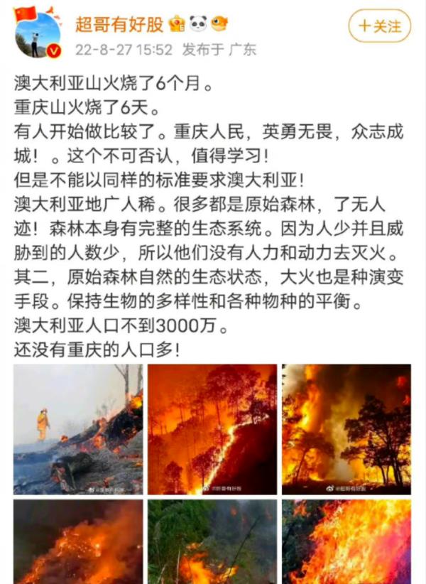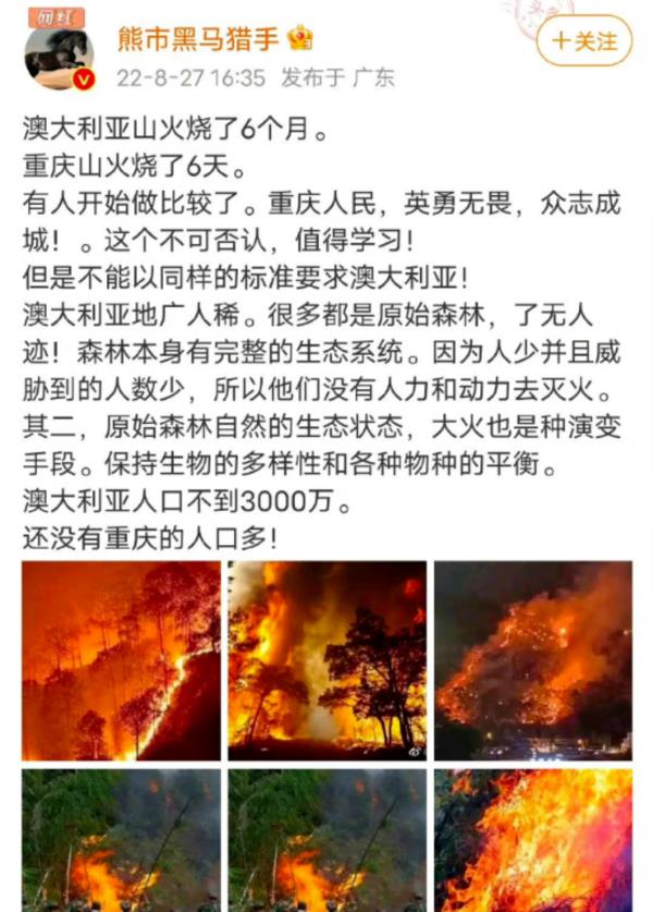 重庆山林大火被迅速扑灭了,重庆志愿者和消防指战员交出了新时代最棒的答卷,给全国其他地方作出榜样。有些人就不高兴了,至于原因也不复杂: