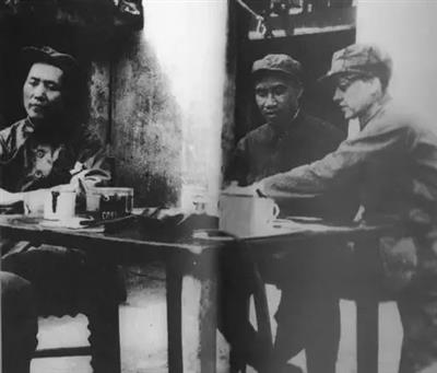 ◆1937年,毛泽东、朱德和访问延安的美国进步作家、记者史沫特莱在一起。