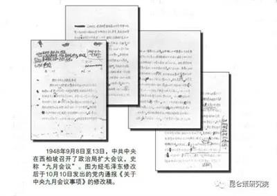 为适应革命战争形势的发展,确立新的战略任务,党中央和毛泽东于1948年9月8日至13日,在西柏坡召开了政治局扩大会议,史称“九月会议”。它是抗战胜利后召开的一次规模较大的重要的中央会议,也是自1947年3月中央撤离延安后的第一次政治局会议。