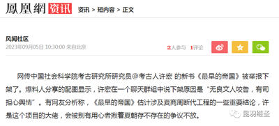 这些学者组成的所谓西方学界,普遍认为(或提前达成一致意见)夏朝遗址内只有没有出土实证性的文字材料,就它就仍然是个传说,又或神话,不应将其与考古发现挂钩,而应该“分而治之”,——换言之,中国历朝历代任何有关夏朝的记载,统统不认。