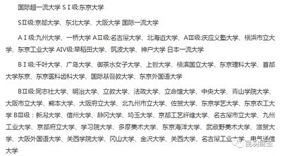 日本大学大致可分为国际超一流大学(只有一所,即东京大学)、国际一流大学、次一流大学、二流大学、三流大学。