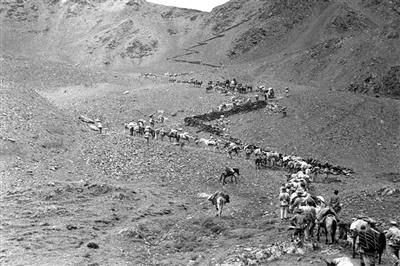 当时,部队手里只有一张国外出版的地图,藏北高原在图上一片空白。首次探路靠的是西北军区特级战斗英雄、先遣连副连长彭清云带领的侦察兵,后续勘查驼运线,是侦察参谋田武带领的侦察队。他们化装侦察时埋藏过军衣,极度口渴时喝咸水湖的苦水,产生甘甜无比的错觉,才有了今天“埋衣山”“甜水海”这些地名。按照粗勘出来的路线,先遣连开始翻越昆仑,探路前行。