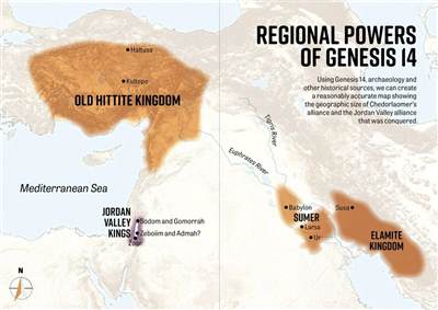希伯来人抵达迦南后,发生了西订谷之战。当时迦南地区的城邦国家,多数臣服两河流域下游的埃兰,其中五个国家臣服十二年后反了,分别是:押玛、琐珥、蛾摩拉、所多玛、洗扁。