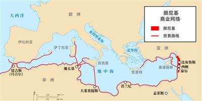 腓尼基人善于航海,到公元前1100年前后,我国商朝末年,大半个地中海都是腓尼基人的势力范围。腓尼基从南北两条线控制地中海,北线是塞浦路斯岛、小亚细亚半岛、克里特岛、爱琴海、亚平宁半岛、热那亚湾、利翁湾,南线是尼罗河三角洲、阿特拉斯山脉、直布罗陀海峡、伊比利亚半岛。