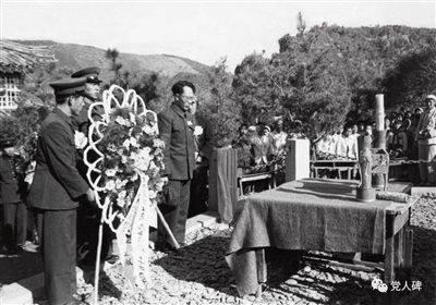 1952 年 10 月 13 日,第二届赴朝慰问团副团长陈沂(中立)代表祖国人民,在朝鲜公祭罗盛教烈士