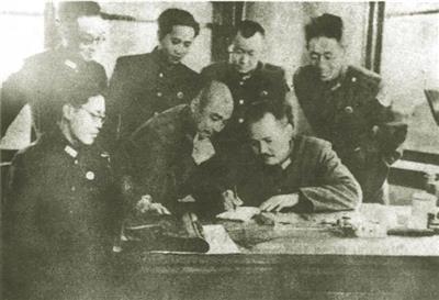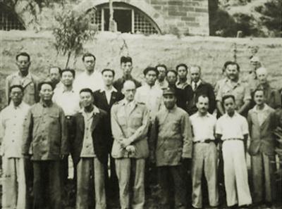◆叶剑英和军调部中共代表团部分工作人员在一起。