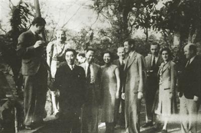 ◆1942年,周恩来(左三)和南方局外事组的王炳南、龚澎等与外国友人在重庆。