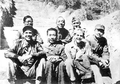 ◆周恩来、杨尚昆与美军观察组第一批来延安人员合影。