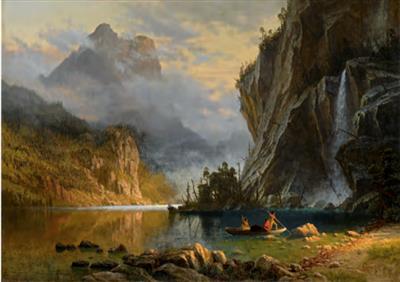 上图名为《印第安人鱼枪捕鱼》,藏于休斯顿艺术博物馆。深处峡谷中捕鱼的印第安人,给人以神秘的感觉