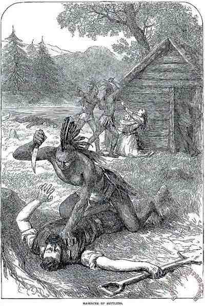 一幅描绘印第安人与殖民者冲突的画,可见印第安人在殖民者中的负面形象