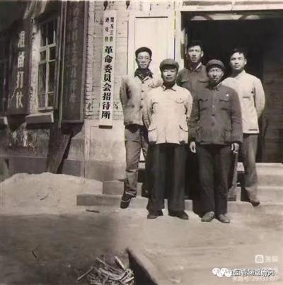 照片说明:1971年6月,黑河地区上海下放干部总领队姚力到逊克县了解上海知青以及上海下放干部情况,在县政府招待所门口,与逊克县同志拍合影。图中人物:前排左起:姚力、陈尤然。后排左起:项守荣、姜学增(逊克县知青办负责人)、邰荣根(上海下放干部)。