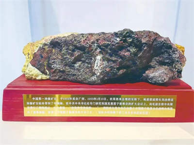 ▲中国第一块铀矿石,被誉为核工业的“开业之石”,1954年采自广西富钟县花山区。来源学习强国