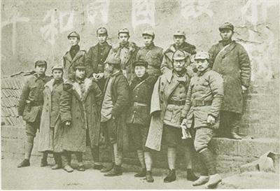 ◆红二、六军团领导同志到达陕北后合影。(后排左五为陈伯钧)