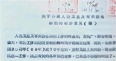 1961年,“两弹”工程也遇到了“下马”的争议。以聂荣臻为主的反对“下马”的同志据理力争,在毛泽东的支持下,“两弹”工程得以继续进行。钱学森和国防部五院的同事们发奋工作,于1962年3月造出了“东风二号”导弹,但发射失败。在反复试验后,于1964年6月发射成功。随后“东风三号”和“东风四号”也开始研制。此时,钱学森认为发射人造地球卫星的基本条件趋于成熟,于是在1965年1月,向中央写了一份建议报告。报告说:“建议国家早日制定我国卫星的研究计划,列入国家任务,促进这项重大的国防科技技术发展。”聂荣臻十分重视钱学森的建议,提出“积极去搞。步骤上,还是先把中程导弹搞出来,作为运载工具。头部(即卫星本体--笔者注)要与中国科学院结合”。此时,中科院根据赵九章等科学家的建议,也向中央建议启动人造卫星工程。经过充分论证,1965年4月,国防科委正式向中央报告,建议启动人造卫星工程,设想在1970年或1971年发射。中央很快批准了报告。由于钱学森的建议是1965年1月提出的,这个卫星上天的工程就命名为“651工程”。中科院立即组建了651研究院,负责卫星总体方案设计等工作。总体组的何正华提出,第一颗卫星命名为“东方红一号”,并在卫星上播放《东方红》乐曲,让全世界人民听到,该提议得到与会专家的一致赞同。