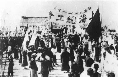 上海总工会组织工人上街游行示威,遭到机枪疯狂扫射。