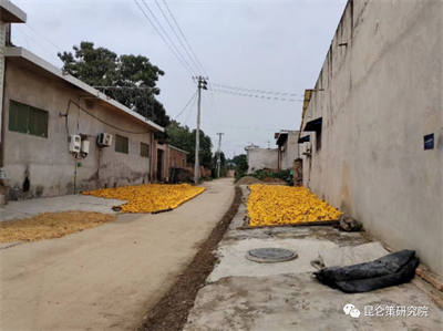 当然,交通安全事关重大,在道路上晾晒会影响交通。但首先应该解决老乡们晾晒的场所。过去各个生产队都有场,能够进行晾晒。现在场都没有了,尤其是今秋雨水大,从地里收回来的玉米水分很大,雨又时停时下,乡亲们只好把收回来的玉米堆放在自家靠道路的屋檐下。天一放晴,立即翻晒,否则堆放的玉米就会发霉,卖不出去。这是他们指望生活的劳动成果。